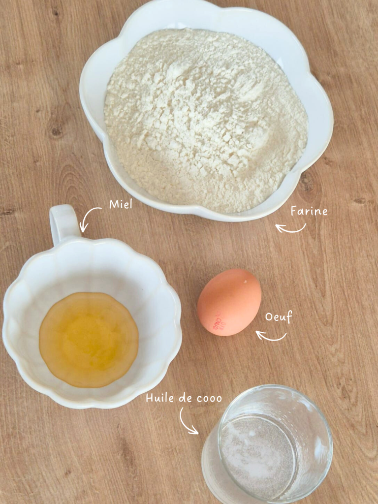 - Œuf : Il donne de la structure et du moelleux à la pâte.